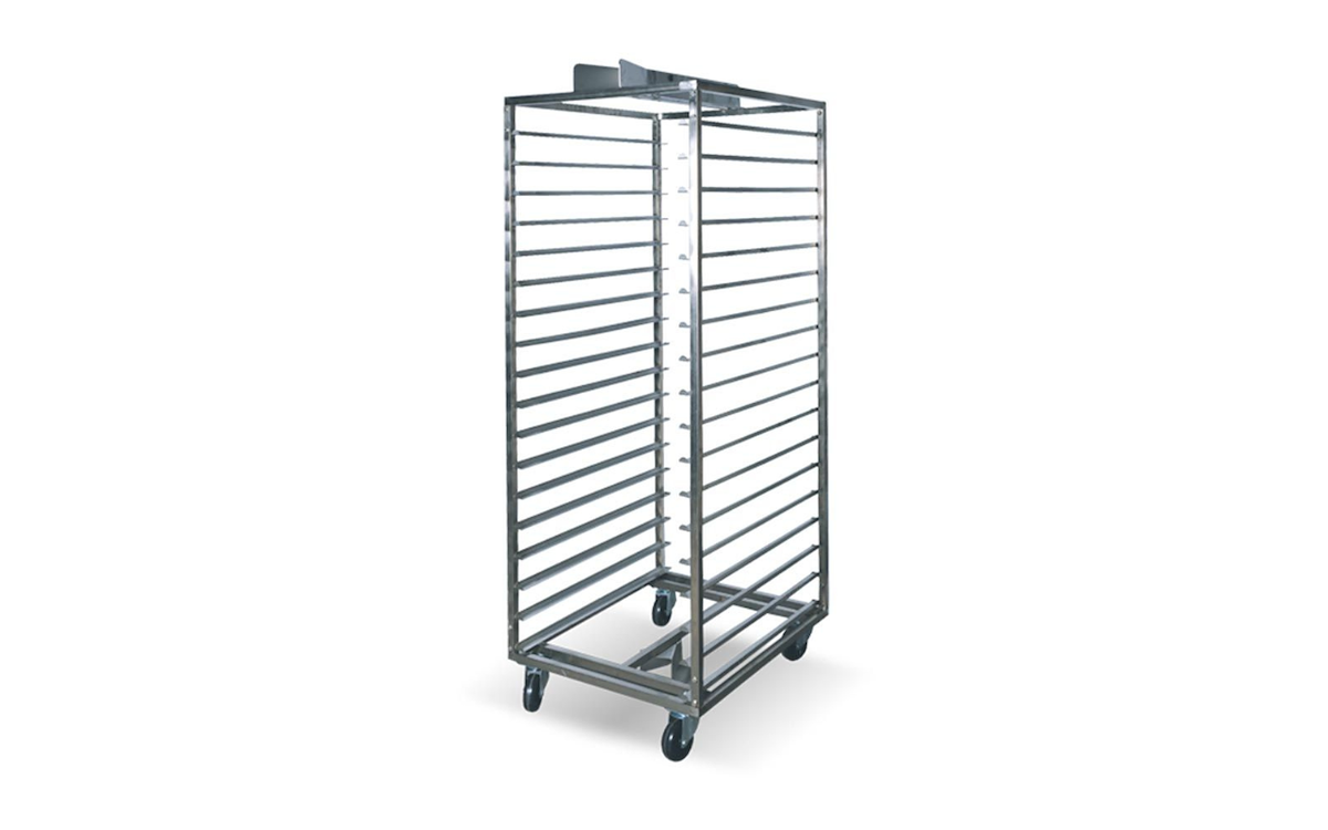 Carrelli professionali per forni tipo rotor. Questi carrelli sono progettati per garantire durabilità e prestazioni eccellenti. Dotati di ruote in termotex nero e supporti girevoli, i carrelli consentono una movimentazione agevole e flessibile, rendendo più semplice il trasporto delle teglie anche negli spazi più ristretti del laboratorio. La struttura tubolare in acciaio inox offre una base robusta e resistente, garantendo una lunga durata nel tempo. Stabili e funzionali, questi carrelli non temono sbalzi di temperatura o urti accidentali, garantendo affidabilità in ogni situazione operativa.. NUMERO RIPIANI: 18 posti DIMENSIONE TEGLIE: 60x80 cm