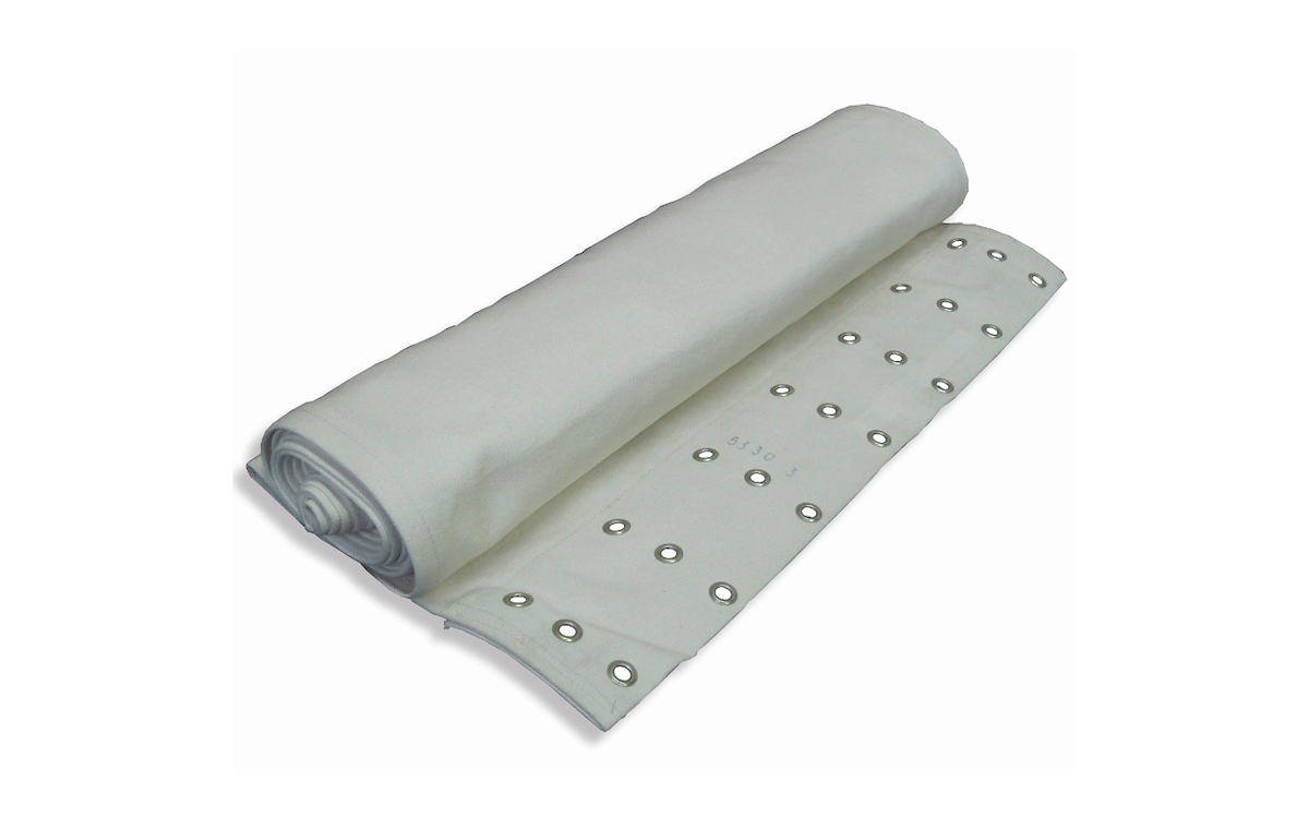 Tela per telai da infornamento in cotone per ogni tipo di forno - sviluppo fino a cm 400. Larghezza tela: cm 56/57. Per ordinare una tela, necessitiamo dei seguenti dati: -cm di interasse rulli scorrimento tela (da centro rullo a cento rullo); -numero dei fori per fila e passo da centro foro a centro foro; -numero file di fori.